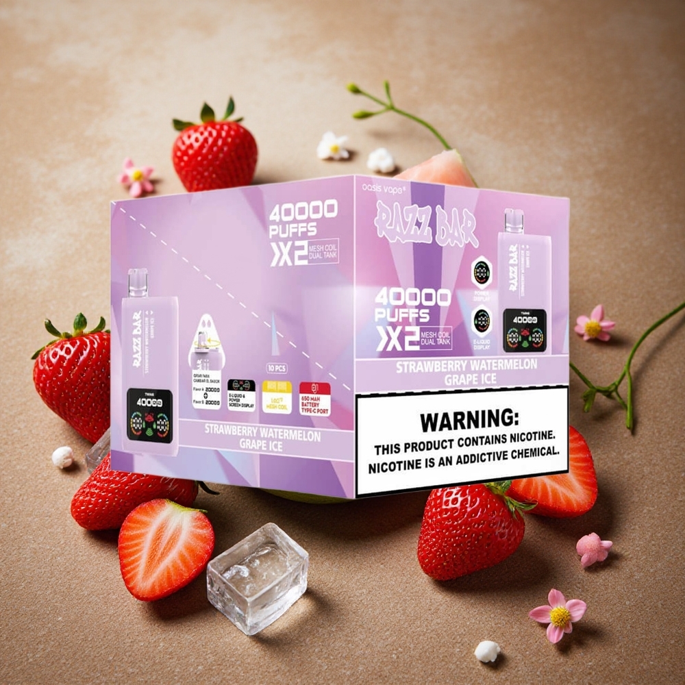 Razz Bar 40000 Potegov Vape za enkratno uporabo Jagoda Lubenica_Grozdje Led z zaslonom moči